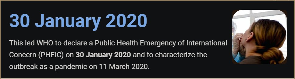 WHO declared a public Health Emergency regarding Covid 19 , January 30 2020