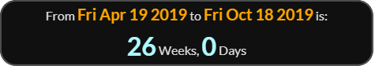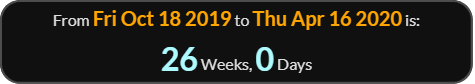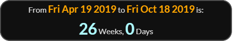 It was conducted exactly 26 weeks [0 days] after the beginning of Passover 2019.