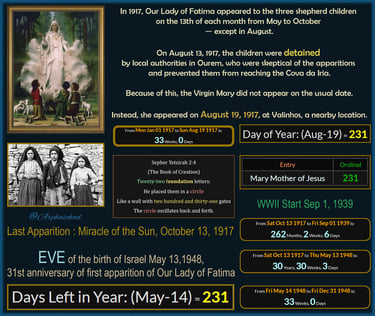 - 📅 August 19: Fourth apparition—Delayed due to the children being jailed; Mary appeared at a different location.