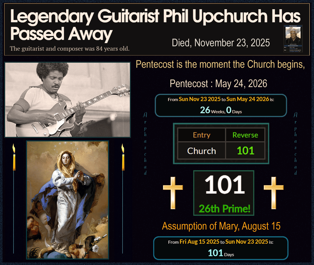 "Queen" = 26 "The Immaculate Conception" = 101 the 26th prime.