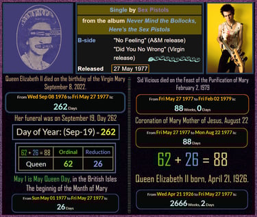 Queen Elizabeth II died in the 911th minute of the Virgin Mary's Birthday, September 8, 2022, 911 Saturnian Days before the start of Madonna's CELEBRATION Tour