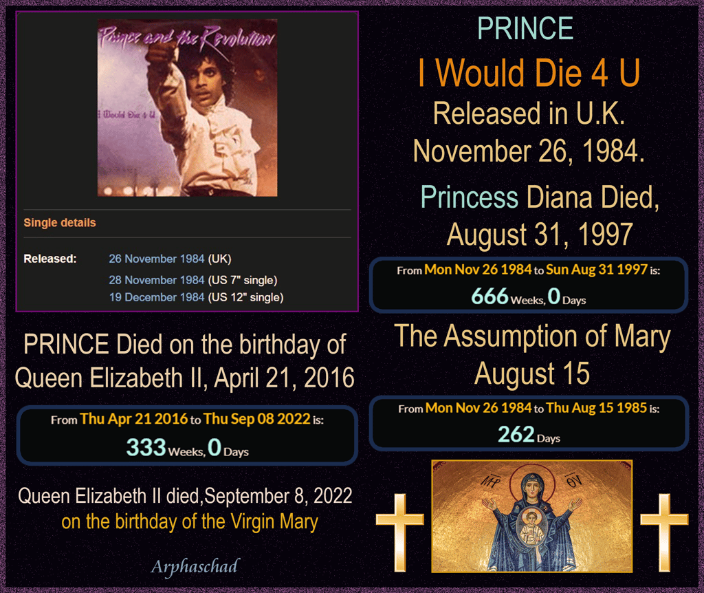 Between Princess Diana's Birth and this Funeral Anniversary entering the TWENTY SIXTH year are 62 years 26 days [Prophetic Calendar}