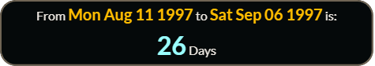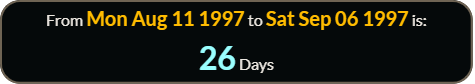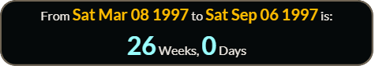 Her funeral was EXACTLY 26 weeks, 0 days after March 8 , 1997.