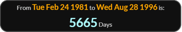 Their divorce was finalized 5665 days later , August 28, 1996.
